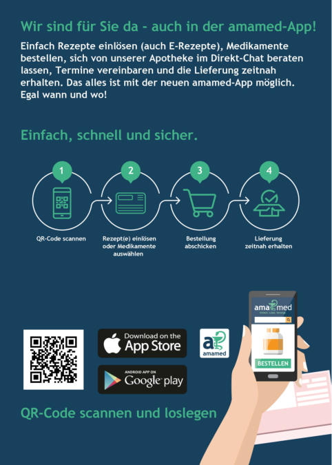 diese ganz einfach vorbestellen. Entweder mit der App „amamed“ wie unten beschrieben oder ganz herkömmlich per Anruf.